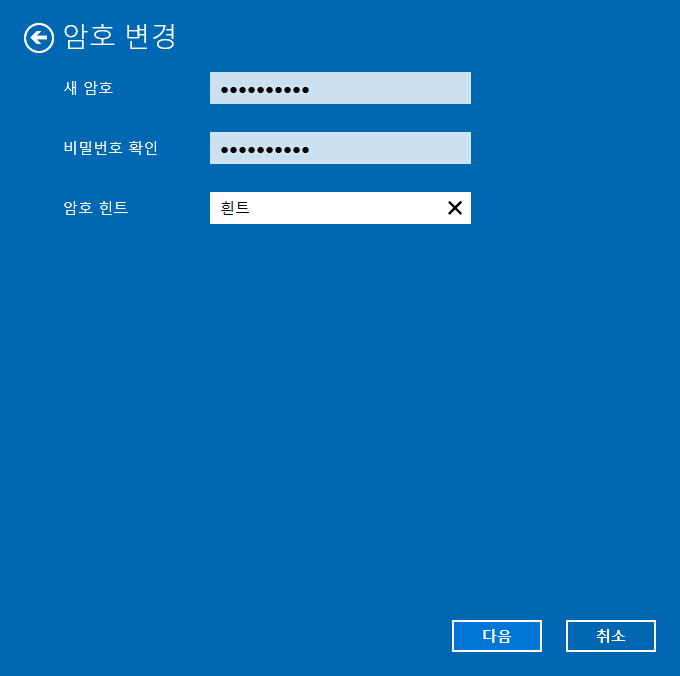 - 현재 비밀번호 입력: 현재 사용 중인 비밀번호를 입력해야 할 수 있습니다.