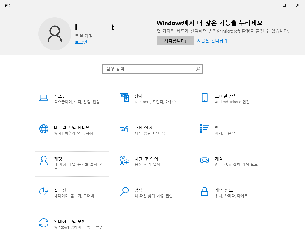 - 설정 열기: 시작 메뉴에서 톱니바퀴 아이콘을 클릭하거나 Windows 키 + I를 눌러 설정을 엽니다.
